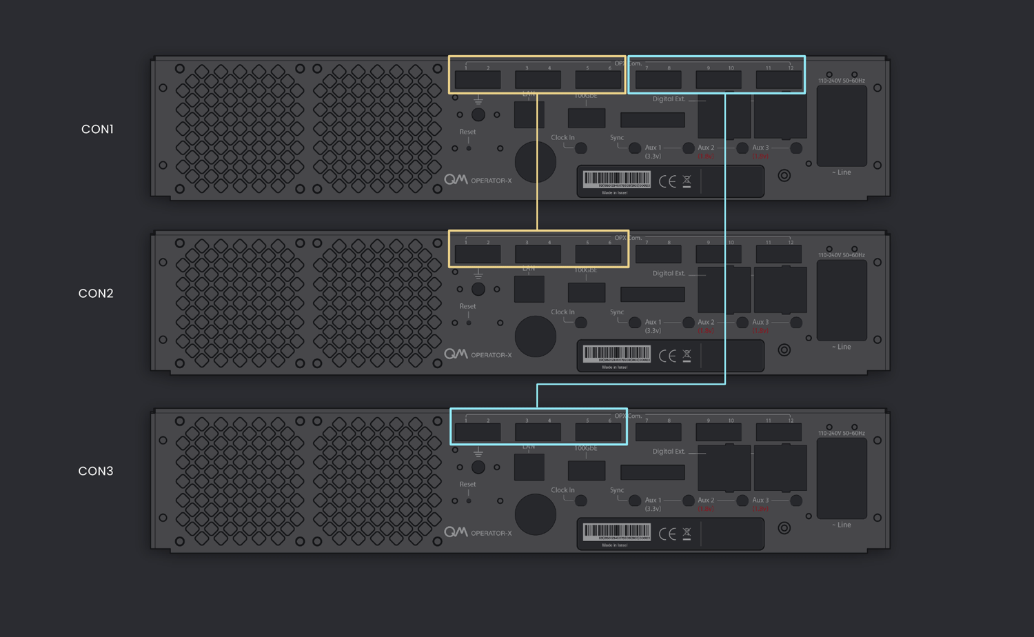 - Connect the OPX+ and octave to ports 2 & 3 of the QM router, or to the user's router.