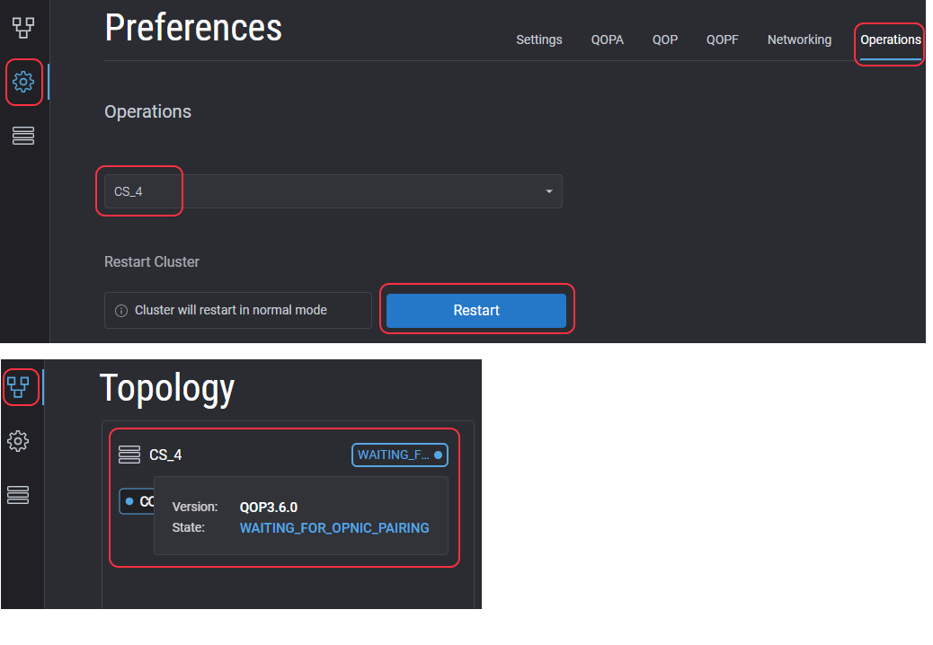 Restart the OPX1000 Cluster and wait for 'Waiting for OPNIC Pairing' status: