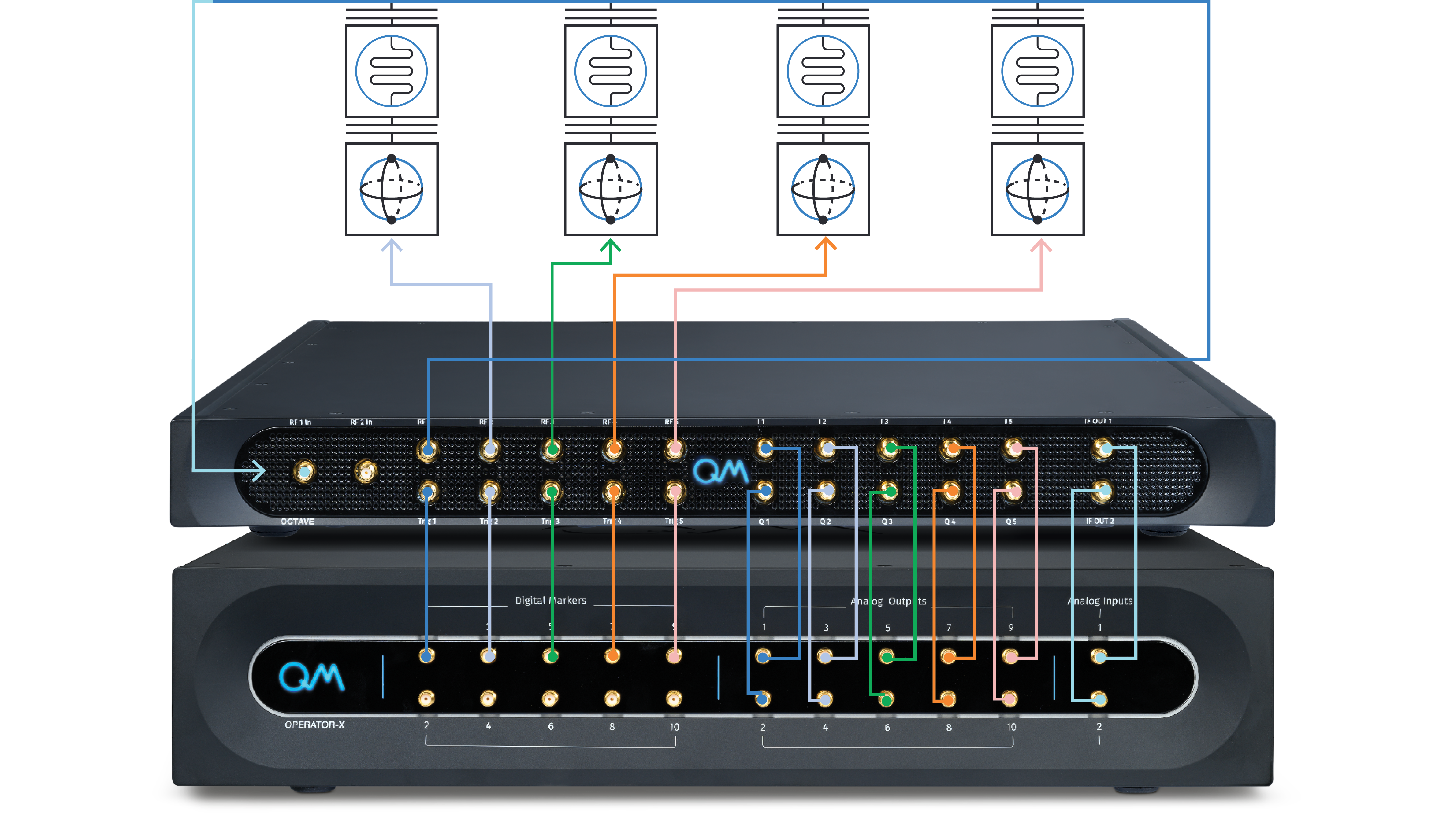 The Octave is a complementary solution for enhancing the OPX capabilities by up- and down-converting its analog outputs, creating a seamless RF front-end OPX. With the Octave, one can have up to five RF outputs and two combined RF inputs operating in a frequency band of 2GHz to 18GHz. The following page describes Octave's block diagram and port specifications. For a detailed user manual, see the Octave guide