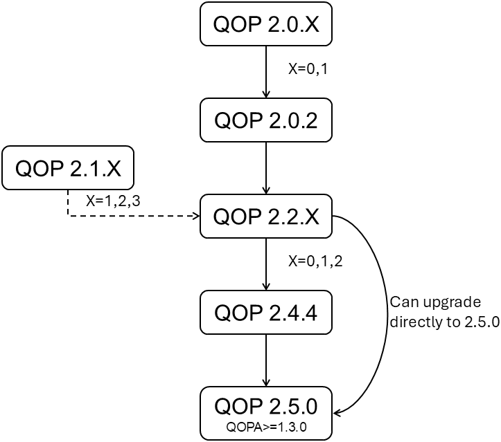 Based on your QOP version, refer to the flowchart below and install each intermediate version until you reach the desired release.
